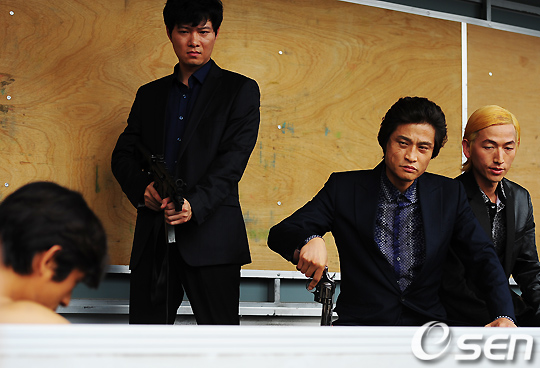 촬영중 박정학이 오지호를 잡아놓고 취조를 하고 있다./ rumi@osen.co.kr