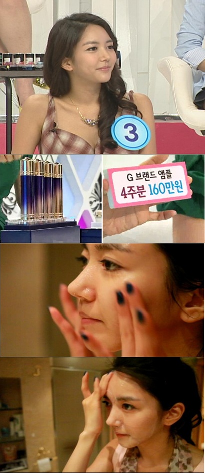그녀가 가장 사랑하는 G사 화장품 4주 재생프로그램의 가격이 160만원이라는 것에 박미선과 이성미 MC와 더불어 김정민, 김태훈, 김한석, 성대현 등이 일제히 놀라움을 금치 못했다는 후문.