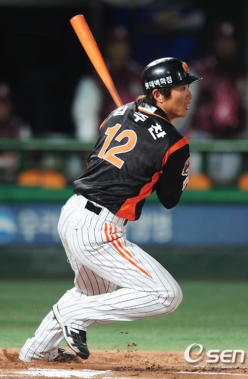 2번 좌익수로 선발 출장한 김주찬은 1, 4회 두 차례 타석 모두 좌전 안타를 때린 뒤 5회 내야 땅볼로 물러났다. 7회 2사 후 전준우가 사구로 출루한 뒤 2루 베이스를 훔쳤다. 타석에는 김주찬. 권오준의 4구째 체인지업을 당겨쳐 좌월 투런 아치로 연결시켰다.
