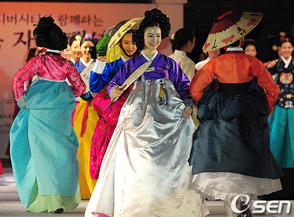 이번 패션쇼 무대 의상은 MBC 드라마 '동이', '대장금' 등 의상을 맡았던 '숙현한복'의 신숙영 원장의 컬렉션으로 채워졌다.