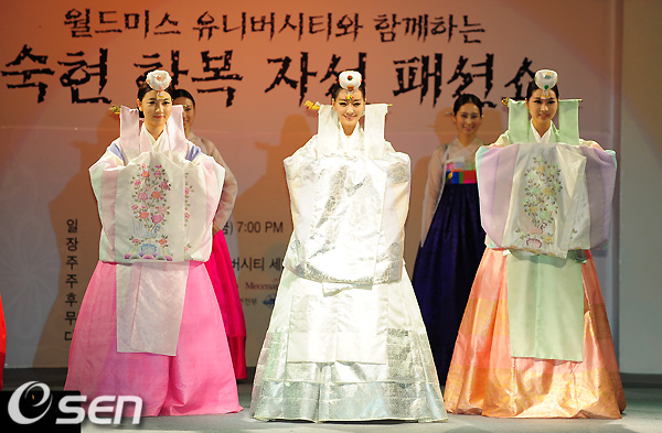 이번 패션쇼 무대 의상은 MBC 드라마 '동이', '대장금' 등 의상을 맡았던 '숙현한복'의 신숙영 원장의 컬렉션으로 채워졌다.