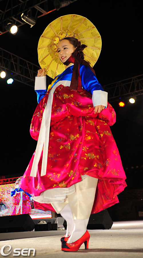 이번 패션쇼 무대 의상은 MBC 드라마 '동이', '대장금' 등 의상을 맡았던 '숙현한복'의 신숙영 원장의 컬렉션으로 채워졌다.
