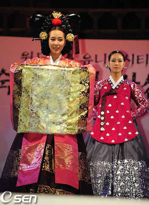 이번 패션쇼 무대 의상은 MBC 드라마 '동이', '대장금' 등 의상을 맡았던 '숙현한복'의 신숙영 원장의 컬렉션으로 채워졌다.