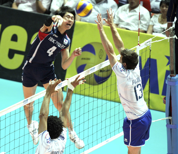 한국은 프랑스에 승리를 거두기 위해 최선을 다했지만 전광인이 10점, 신영석이 8점에 그치고 말았다.