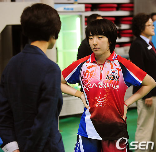 얼짱 탁구선수 서효원이 경기 전 현정화 감독의 지시를 받고 있다. / rumi@osen.co.kr