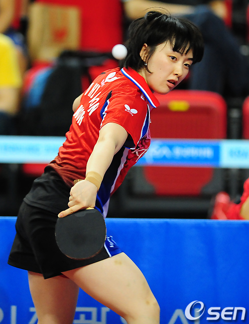 여자단식 2라운드에서 대한민국 서효원이 공격을 하고 있다. / rumi@osen.co.kr