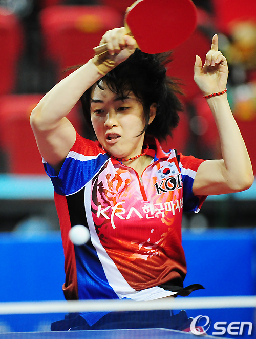 여자단식 2라운드에서 대한민국 서효원이 공격을 하고 있다. / rumi@osen.co.kr