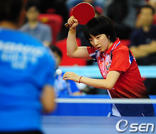 여자단식 2라운드에서 대한민국 서효원이 공격을 시도하고 있다. / rumi@osen.co.kr