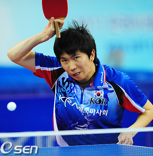 남자단식 2라운드에서 대한민국 유승민이 공격을 시도하고 있다. / rumi@osen.co.kr