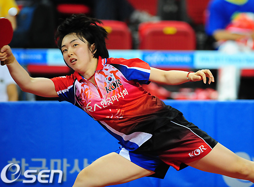 여자단식 2라운드에서 대한민국 서효원이 공격을 시도하고 있다. / rumi@osen.co.kr