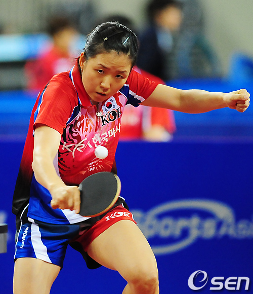 여자단식 2라운드에서 대한민국 박미영이 공격을 시도하고 있다. / rumi@osen.co.kr