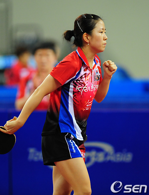 여자단식 2라운드에서 대한민국 박미영이 공격성공 후 주먹을 쥐고 있다. / rumi@osen.co.kr