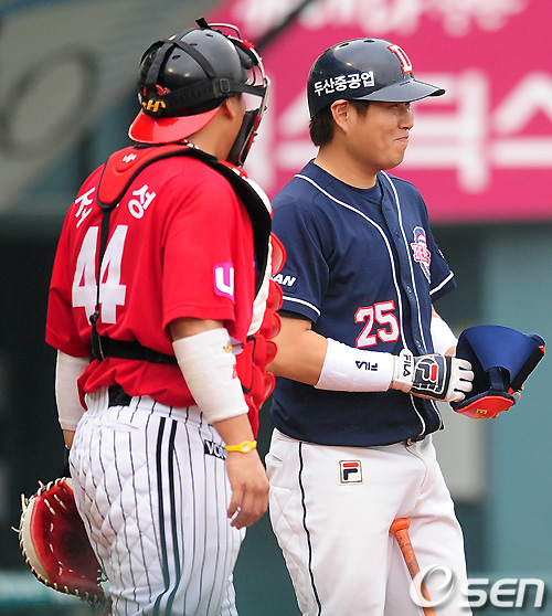뒤늦게 무언가 이상하다고 느낀 양의지 역시 전광판을 확인한 뒤 멋쩍은 웃음을 지으며 홈플레이트 쪽으로 돌아왔다.