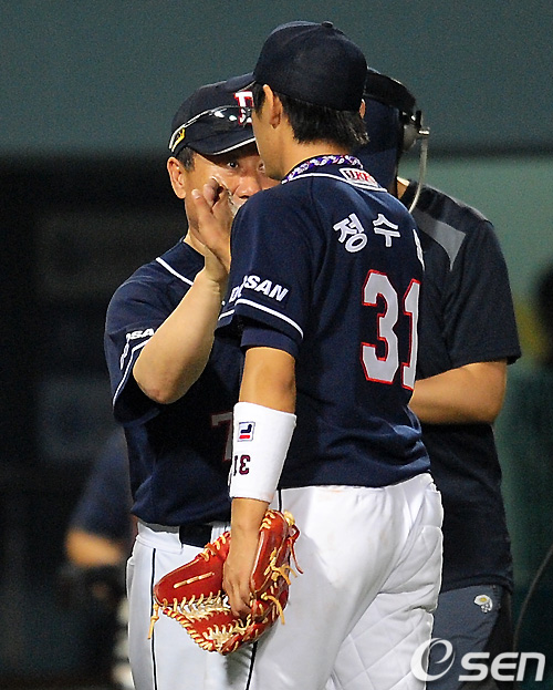 두산은 2일 잠실구장에서 열린 '2011 롯데카드 프로야구' LG전에서 3-3 동점이던 연장 11회 정수빈의 내야 땅볼 덕분에 4-3으로 승리를 거두며 기쁨을 만끽했다.