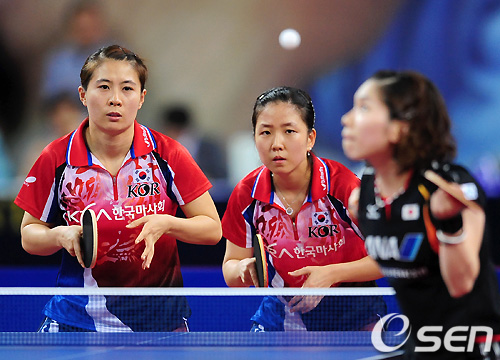 여자복식 결승전 경기에서 대한민국 김경아와 박미영이 상대팀의 서브를 바라보고 있다. / sunday@osen.co.kr