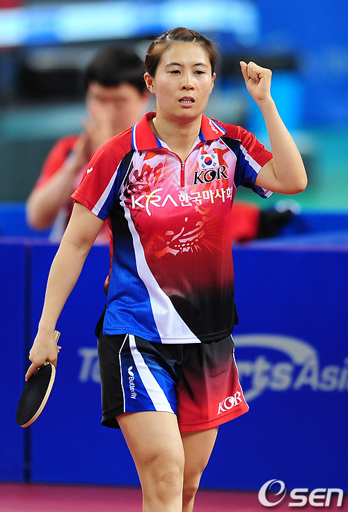 여자복식 결승전 경기에서 대한민국 김경아가 공격에 성공하고 환호하고 있다. / sunday@osen.co.kr