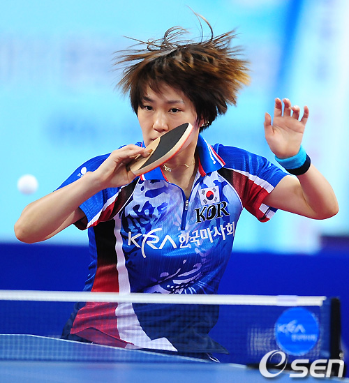 여자단식 결승전 경기에서 대한민국 문현정이 공격을 시도하고 있다. / sunday@osen.co.kr