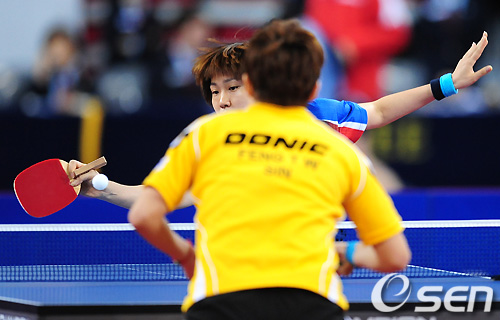 여자단식 결승전 경기에서 대한민국 문현정이 싱가포르 펭티안웨이의 공격을 받아내고 있다. / sunday@osen.co.kr