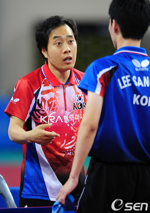 남자단식 결승전 경기에서 대한민국 유남규 감독이 이상수에게 작전을 지시하고 있다. / sunday@osen.co.kr