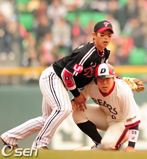 두산의 호수비는 5회에도 이어졌다. 3루수 이원석이 선두타자 박경수의 강습 타구를 걷어내 1루에서 아웃 시켰다. 이어 양영동의 1루 방향 기습 번트 때 1루수 최준석이 적극적으로 달려 들어와 1루 베이스로 커버를 들어온 고영민에게 정확히 송구해 발 빠른 양영동을 잡아냈다. 두 타구 모두 안타성 타구였기에 또 다시 한 점을 지켜낸 것이나 다름없었다.
