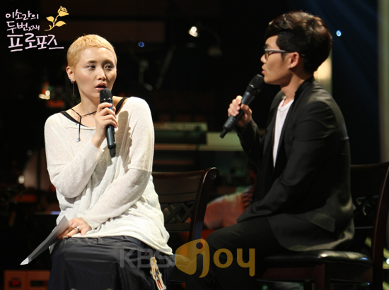 5일 방송되는 KBS JOY '이소라의 두 번째 프로포즈'에 출연한 김범수는 이소라에게 “고등학교 재학 중 음악프로그램을 진행하던 이소라를 보며 처음으로 사랑이라는 감정을 느꼈고 결혼까지 생각했다”고 전해 촬영장을 핑크빛으로 물들였다.
