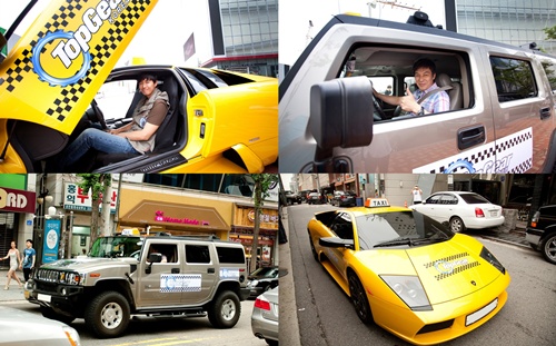 배우 연정훈과 김갑수가 일일 ‘슈퍼카 택시 기사’로 깜짝 변신해 화제다. 두 사람은 각각 택시로 꾸며진 ‘람보르기니 무르시엘라고’와 ‘허머 H2’를 몰고 서울 시내를 돌며 시민들의 눈길을 사로잡은 것.