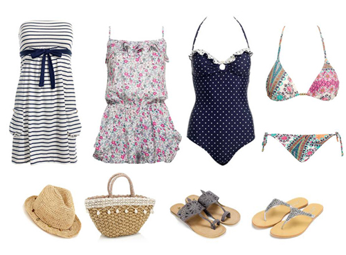 휴양지의 서머룩으로 시선을 고정시킬만한 멋들어진 아이템은 톱 드레스, 점프 수트, 수영복을 꼽는다. 시원한 바닷가에 어울릴 마린룩의 대표 스트라이프 톱 드레스부터 발랄한 플라워 패턴의 점프 수트는 통풍이 잘되는 것은 물론 편한 활동성까지 겸비한 사랑스러운 여인으로 표현해준다. 여기에 비치 룩에 빼놓을 수 없는 스트로 소재의 넓은 챙 모자나 가방으로 간간히 개성을 표현해도 좋다.