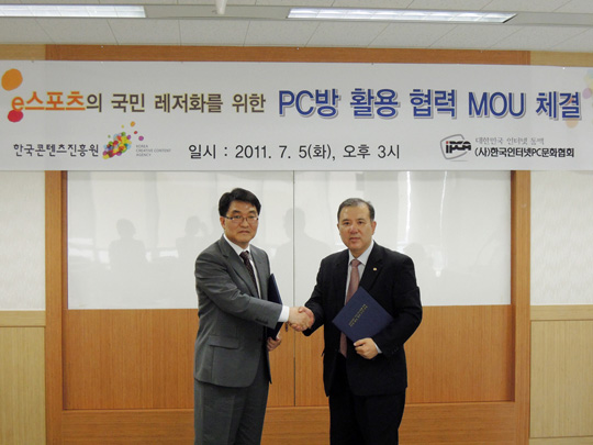 한국콘텐츠진흥원과 한국인터넷PC문화협회는 지난 5일 서울 상암동 한국콘텐츠진흥원 본관 대회의실에서 'e스포츠의 국민 레저화를 위한 PC방 활용 협력' 협약을 체결했다.