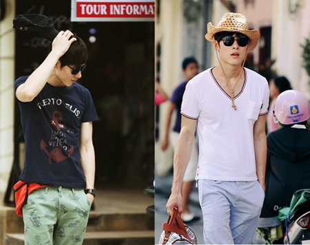따라서 베이직 티셔츠에 벨트와 시계, 모자 등의 액세서리로 포인트를 주거나 하의와 비슷한 색상의 티셔츠를 입는 것 역시 평범한 듯 돋보이는 스타일링 방법이다. 특히 위아래 비슷한 색상으로 입으면 키가 커 보이는 효과도 얻을 수 있는 일석이조 아이템.