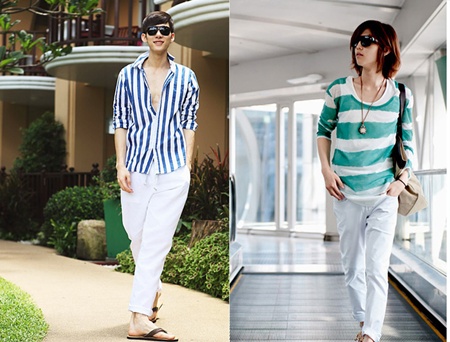 이 팬츠는 무늬나 색상에 구애 받지 않고 티셔츠나 셔츠에도 잘 어울리고 평범한 상의까지 돋보이게 만드는 마법의 아이템 중 하나. 화이트 팬츠에 선글라스와 메탈시계를 매치한다면 '차도남' 스타일을 연출해 휴가를 즐기기 위해 몰려든 여성들의 마음도 흔들 수 있다.