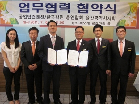 공업탑컨벤션(총괄이사 박종칠)과 한국 학원 총연합회 울산지회(회장 심성윤)가 6일 씨오레 로즈마리룸에서 연회행사 관련 업무협약을 체결했다.