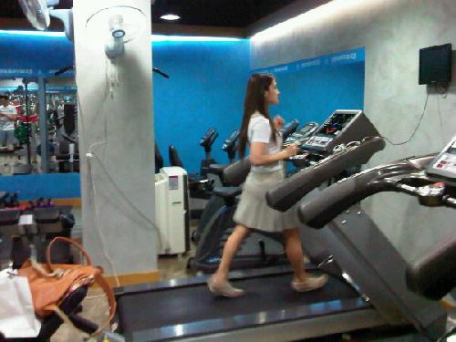사진 속 규리는 교복을 입고 열심히 러닝 머신으로 운동을 하고 있다.