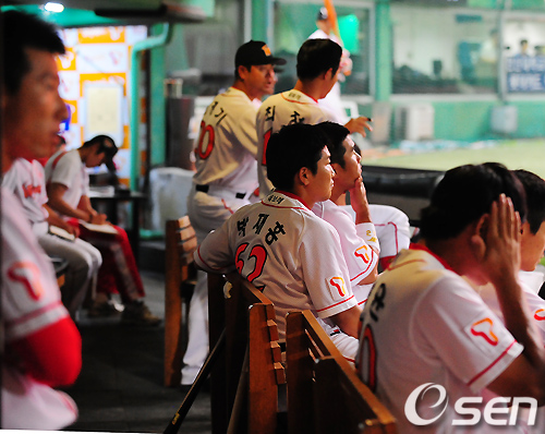 9회말 패색이 짙어지자 SK 덕아웃의 분위기가 어둡다./ rumi@osen.co.kr