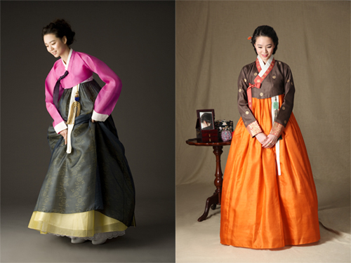 신부들에게 억지로 붉은색치마를 강요할 수도 없는 노릇이지만, 남치마나 은색치마는 아무래도 나이가 들어 보이기 때문에 배색과 디테일, 디자인라인을 등을 적절하게 선택해야 더욱 멋스럽게 입을 수 있다.