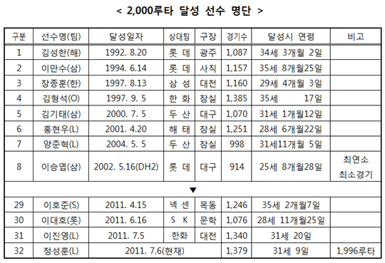 LG 트윈스 정성훈(31)이 역대 32번째 개인 통산 2000루타에 4루타만을 남겨두고 있다.