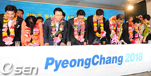 평창 유치 대표단이 기자회견장에서 인사를 하고 있다. /jpnews@osen.co.kr
