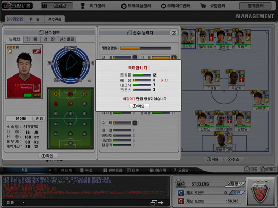 이러한 점을 감안해 1군과 2군을 두고 적절하게 조절한다면, 게임에 임하는 좋은 팁이 될 것이다. 실제 경기가 종료된 후 팀 관리에 가면 선수들의 공격/기술/신체/정신/수비 등 다섯 가지 능력치와 레벨업 경험치가 오르는 것을 확인할 수 있다. 연습경기와 친선경기 등 모든 경기는 2D와 3D로 생중계가 가능하며, 보고 싶은 팀의 경기도 얼마든지 중계센터에 가서 실시간으로 관람할 수 있어 상대팀 전략을 미리 보고 전략을 세울 수도 있다는 점을 명심하자.
