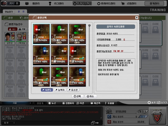 트레이닝 센터에는 연습경기 외에도 훈련 메뉴를 통해 선수들을 감독이 원하는 방향으로 육성시킬 수 있다. 능력치와 포지션 숙련도 등을 체크해보고 해당되는 훈련에 선수를 투입한다면 정해진 시간 동안 선수는 훈련을 받게 되고 유저가 원하는 방향으로 선수를 육성시킬 수 있다.