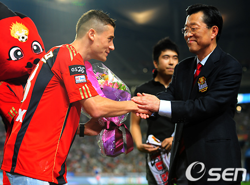 하프타임에 알 샤밥으로 이적이 결정된 제파로프의 환송식이 열리고 있다./ rumi@osen.co.kr