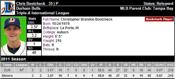 부첵은 탬파베이 산하 트리플 A 더햄 불스에서 16경기(선발 7경기) 3승 2패 평균자책점 3.57을 기록했다. 피안타율 2할1푼8리에 땅볼/뜬공 비율 0.67이다. 부첵의 경우 땅볼 유도형 구질을 갖추고 있으나 빈도가 많은 편은 아니었다.