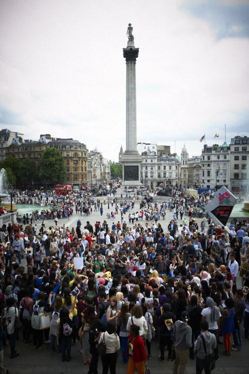 YG 엔터테인먼트 소속 가수들의 영국 공연을 요구하는 플래시몹(Flash Mob) 행사가 9일(현지시간) 오후 3시께부터 런던 트라팔라 공원(내셔널 갤러리 앞), 템즈강 골든 쥬빌리 브리지 위, 런던 아이 앞, 주영한국문화원 등 현지 랜드마크에서 약 1.6km 행진으로 열렸다.