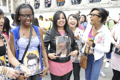 가슴과 등, 가방 등에 빅뱅과 2NE1 멤버들, YG 엔터테인먼트의 양현석 사장의 얼굴이 인쇄된 종이를 붙이고 나타나기 시작한 다양한 인종의 약 300명의 팬들은 금세 광장 한 켠을 차지했다. 이들이 준비해 온 플래카드에는 'Bring YG to the UK'를 비롯해 'YG가 제일 잘 나가', '사랑해요', 'YG가 짱이야' 등이 한국어로 빼곡히 적혀 있었고, 2NE1의 롤리팝 캔디를 소품으로 가져오는가 하면, 태극기를 휘날리는 소녀도 있었다.