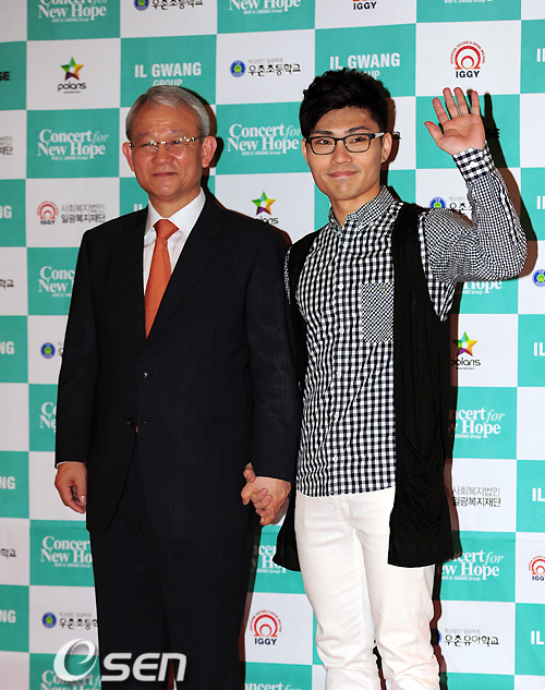 행사에 앞서 일광그룹 이규태 회장과 가수 김범수가 포토월에서 인사를 하고 있다. / ajyoung@osen.co.kr
