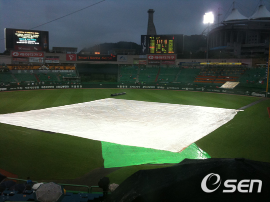 쏟아진 비 때문에 롯데 자이언츠의 승리도 이대호의 홈런도 무효가 됐다. 반면 SK 와이번스는 안도의 한숨을 내쉬었다.