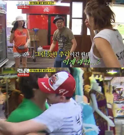 파타야 수상시장에서 펼쳐진 이번 ‘런닝맨’ 미션은 바로 ‘돈 가방을 훔친 범인을 찾아라’. 민정-종국-재석 팀이 방콕 레이스를 통해 획득한 돈 가방을 정체 모를 누군가가 훔쳤는데 이를 찾는 것이 과제였던 것.