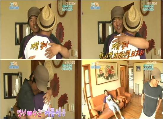 '1박2일'의 이수근과 나영석 PD가 격한 포옹을 나누며 커플 탄생을 알렸다.