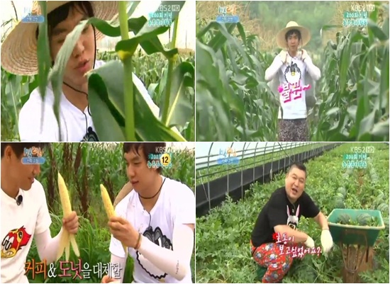 김종민과 은지원은 옥수수밭으로, 강호동은 수박 밭으로, 엄태웅은 복분자 밭으로, 은지원과 이수근은 각각 감자 밭과 복숭아 밭으로 향했다.