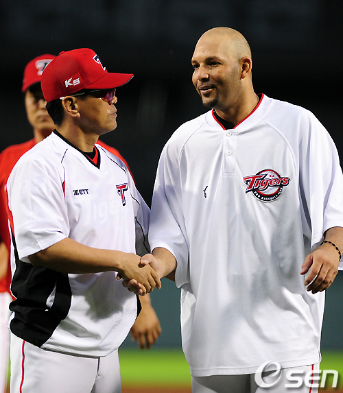 경기후 KIA 조범현 감독과 로페즈가 악수를 나누고 있다. /jpnews@osen.co.kr