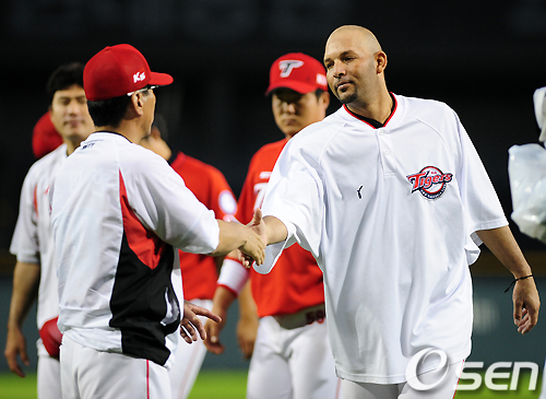 경기후 KIA 조범현 감독과 로페즈가 악수를 나누고 있다. /jpnews@osen.co.kr
