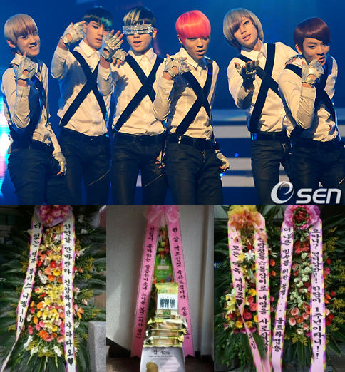 사진 속 화환은 “앤디양반! 틴탑이 1주년이라니” “틴탑 첫돌 돌잡이로 내맘을 사로잡았어” 등의 재치있는 문구가 눈길을 끌었다.